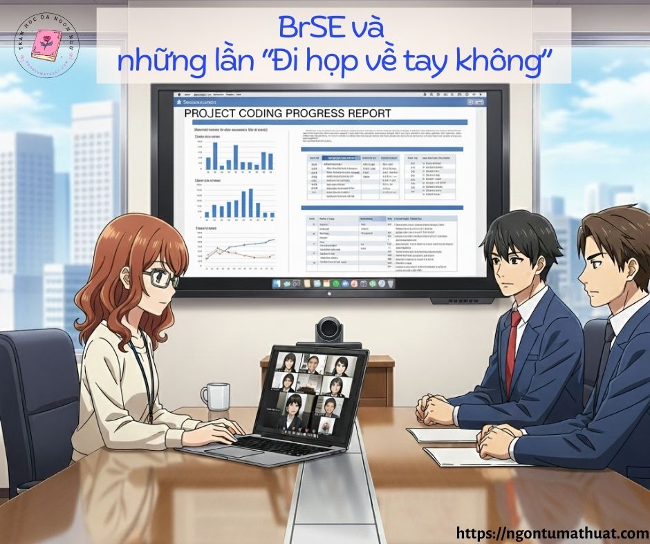 👉 Sau những lần “lạc trôi” cùng dòng suy nghĩ của khách, mình mới thấm rằng BrSE – dù non-tech – vẫn phải giữ vai trò người cầm lái, đưa cuộc họp quay lại đúng quỹ đạo của dự án. Không chỉ lắng nghe mà còn cần biết chắt lọc, hệ thống hóa và định hướng cuộc họp theo một barem chuẩn chỉnh và rõ ràng.